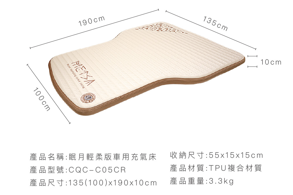 -眠月TPU拉絲充氣床尺寸說明&產品說明-