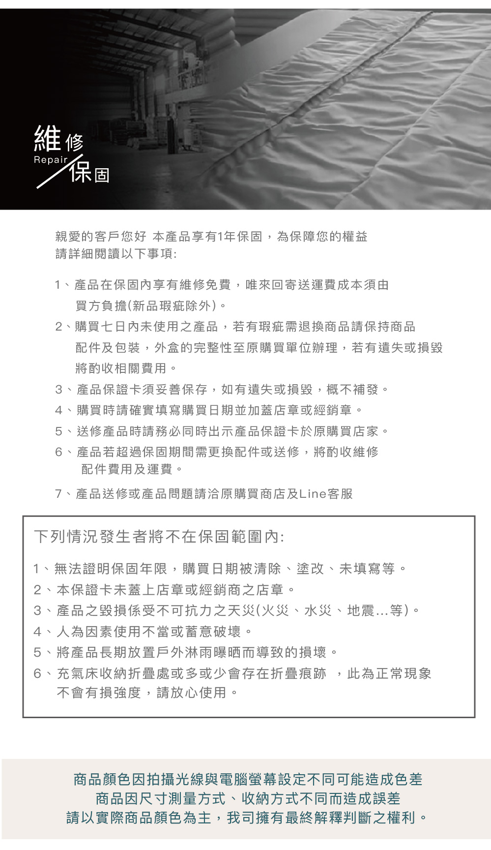 -業界首創拉絲充氣床1年保固-