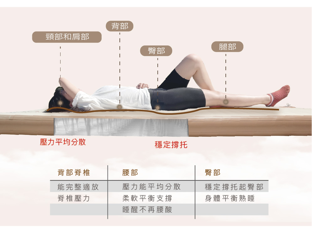 有效平均釋放身體壓力,夜晚翻身也不干擾